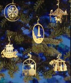 Over 70 detailed designs, many three-dimensional , or with  moving parts.  Choose traditional, whimsical, nautical, nature and wildlife motifs.  Each ornament comes with its own decorative hook